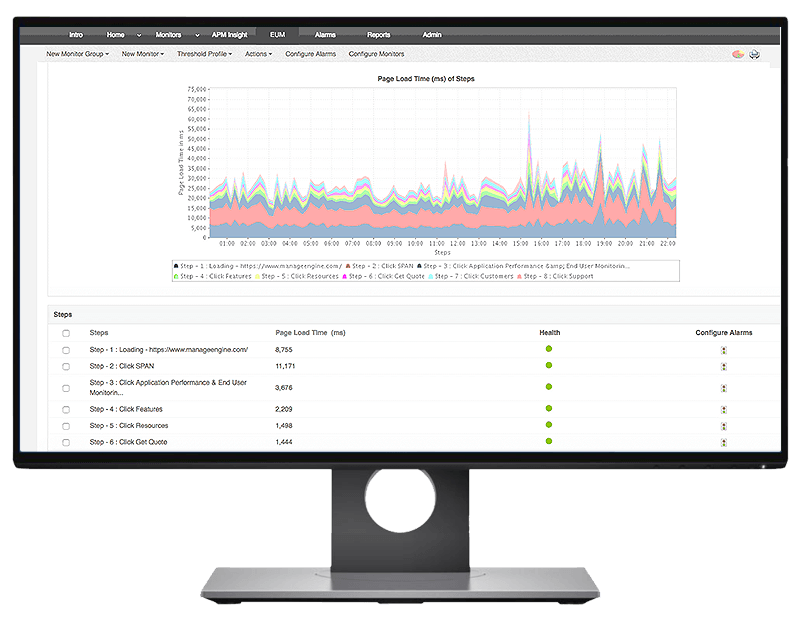 - Unlike basic application monitoring solutions which only monitor performance metrics, with Applications Manager, you can understand end user’s experience as they journey through your applications.