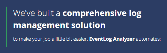 EventLog Analyzer comes with a custom log parser that can extract fields from any human-readable log format. By managing logs from vulnerability scanners, threat intelligence solutions, data loss prevention applications, and a lot more, EventLog Analyzer truly offers a single console for viewing all your security log data.