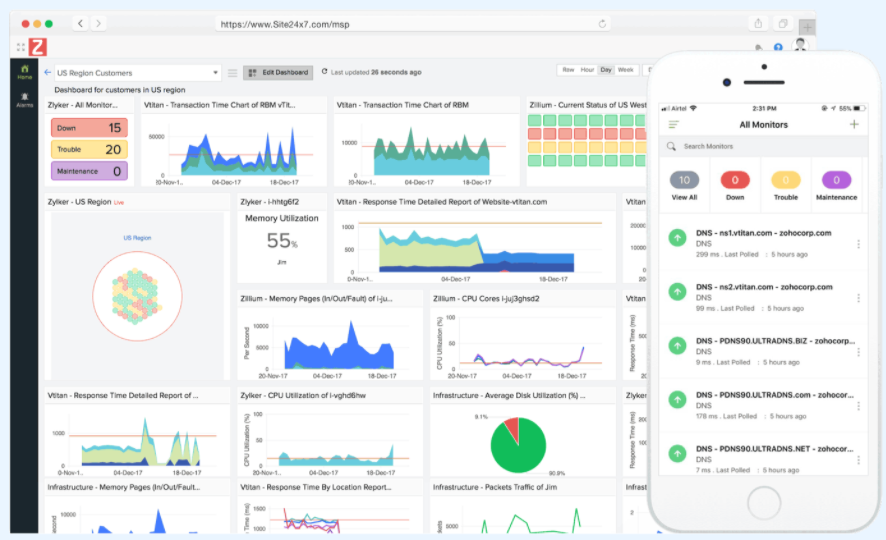 As an RMM software for uninterrupted service delivery, Site24x7 helps you support your clients’ capabilities by offering specialized tools for their unique monitoring needs. You can achieve complete control over customer accounts using the features crafted exclusively for MSPs’ needs.