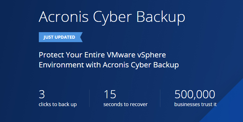 Acronis Cyber Backup is a complete, flexible backup and recovery solution, delivers fast recovery time objectives (RTOs) and reduces your total Cost of Ownership (TCO).